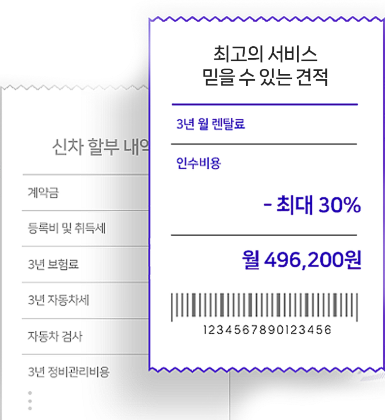 - 만기 시 인수 혹은 반납이 자유로워 중고차 처리 부담이 없습니다.